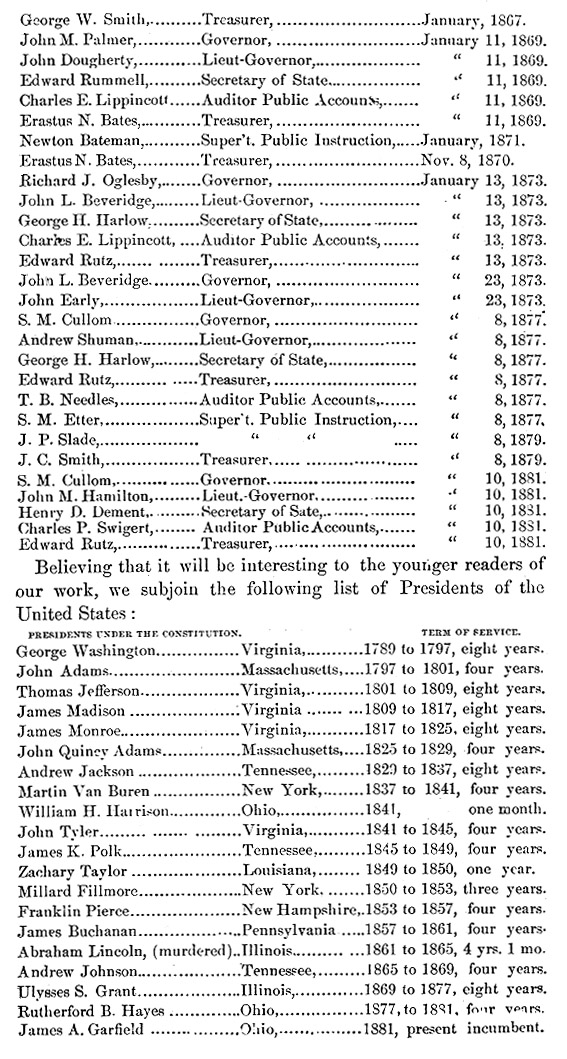 Capital for twenty years. At the end of that period it was changed to Springfield. Below we give