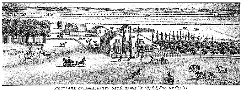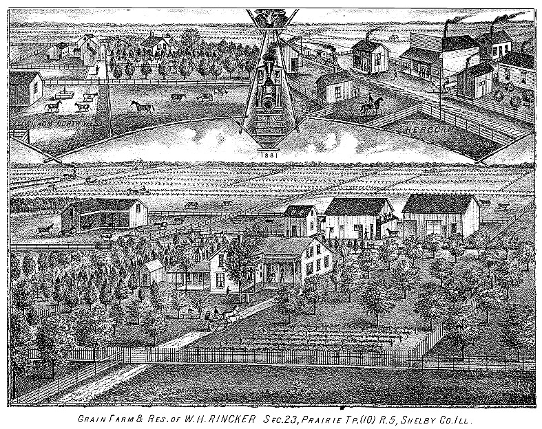 Rincker, Lafayette Fisk, and Samuel Bailey, -- handsome views of which are shown elsewhere in this work. Among the old residents of Shelby county now living in Prairie, is R.B. Miller, a native of Virginia, who came to the county in 1825, and Joel J. El