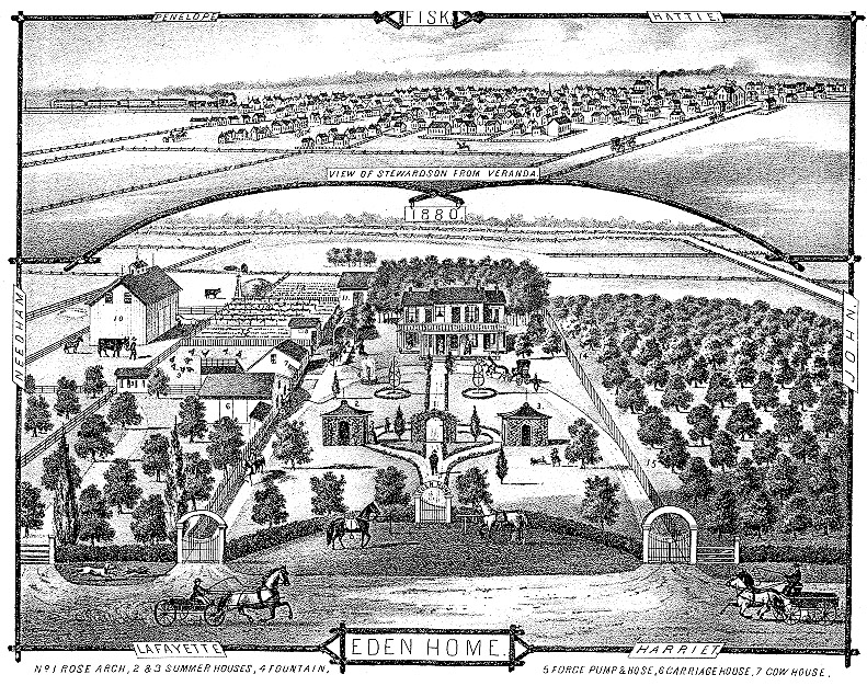 The town of Stewardson, situated on the Wabash, St. Louis, and Pacific railroad, is built on section 34, on nice rolling ground, at the head waters of Wolf creek, and contains a population of about seven hundred. The town was laid off by William Stewards