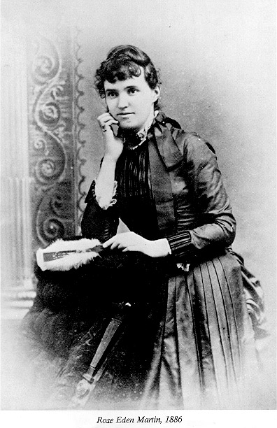 MRS. I.J. MARTIN* *The Lovington Reporter, Lovington, Ill., Friday, November 9, 1907. Rose Eden, the second daughter of J.R. Eden and his deceased wife, was born in Sullivan, 2 Nov. 1858. She was married to I.J. Martin, son of J.N. Martin and wife, of Whitley township, 30 June 1886; died at their home in Sunnyside at midnight, 5 Nov. 1907 at age 49 years, and 3 days. She ranked very highly in an educational line. She quit the public school at age 15 and entered the Bastion Seminary and spent a year in St. Mary's Academy. Afterwards she went with the family to Washington City, her father being a member of Congress, and entered the Visitation Academy in Georgetown of the District of Columbia, where she graduated as valedictorian and won the gold medal of the class. She aft erwards re-entered the same institution and took a post graduate course; among her acquirements were French, music and German. For a number of years she has taught with unlimited success music and French, only laying down the work about a year ago when her health failed. She was a member of the Twenty Club, an advanced literary club of Sullivan that has for its object improvement and social culture. She was highly honored for her wide store of knowledge as well as her social attainment. She is the second member this clu b has lost by death.