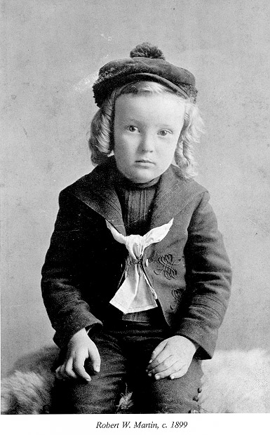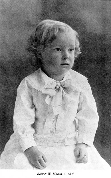 literature and poetry as well as history and biography. Also, he had many books in the field of science and astronomy -- as well as a large magazine collection, including a travel magazine called ASIA, and later the National Geographic. H e also kept himself very well informed on current events. Philip remembers seeing copies of the airmail thin-paper edition of the Manchester Guardian at his house in the late 1940's. The oldest child, Olive, was also bookish -- later becoming a h igh school teacher in Sullivan, and then in other cities in Central Illinois. In her autobiographical sketch, Aunt Mabel wrote that Grandfather "had a fine speaking voice and read with great expression. I could never forget his rendition of Poe's The Bells and The Raven. He waxed quite dramatic when he read stirring passages from Scott's Marmion or Lady of the Lake." Father must also have enjoyed these readings, or at least have been impressed by them, for I remember one occasion as a child when he conducted a similar poetry reading for Philip and me. One of the poems he chose w as "The Raven." There must have been other similar occasions when I was younger, for I remember memorizing a good deal of "Hiawatha." Mabel continued: "There was never much money at our house and we had few luxuries, but we always had the necessities. Fa ther's only extravagance was books, and he encouraged us to read them and taught us to respect them. We had few books written especially for children or young adults, but read the ones our parents enjoyed." So Father grew up in a household that had an un common interest in books and education. His favorite subject, according to Mabel, was history. Second, his father -- my Grandfather I.J. Martin -- was not at all religious. His parents had been Hard Shell Baptists, and so had their predecessors going back several generations to Kentucky. But somewhere along the line, Grandfather